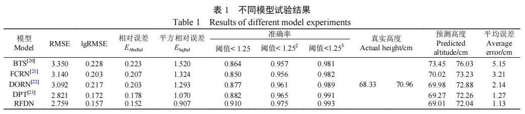 试验结果表明,深度生成网络在均方根误差(2.759)、对数均方根误差(0.157)、相对误差(0.152)和平方相对误差(0.907)等指标上均优于对比模型。进一步将深度估计结果转换为株高,并与实测值进行对比分析,该方法准确率达到98.74%,优于BTS(92.68%)、FCRN(97.17%)、DORN(97.44%)和DPT(98.40%),证明了该方法在冬小麦长势监测中的有效性和可靠性,能够为生产实践提供理论指导。