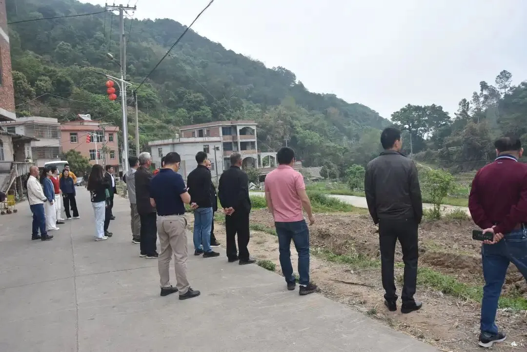 调研组一行先后参观了磜头溪水土保持治理工程、高梅住宅小区建设项目、"三落古大厝"革命旧址。吴世友主席向调研组介绍头梅村开展乡村振兴试点工作取得的成效。
