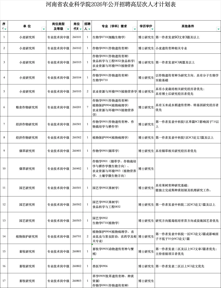>有编制!河南省农业科学院招聘公告