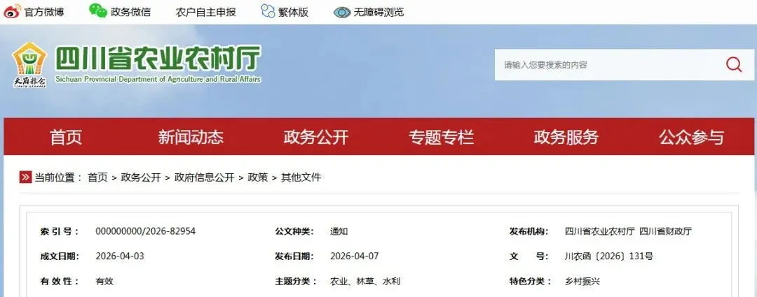 四川省农业农村厅 四川省财政厅