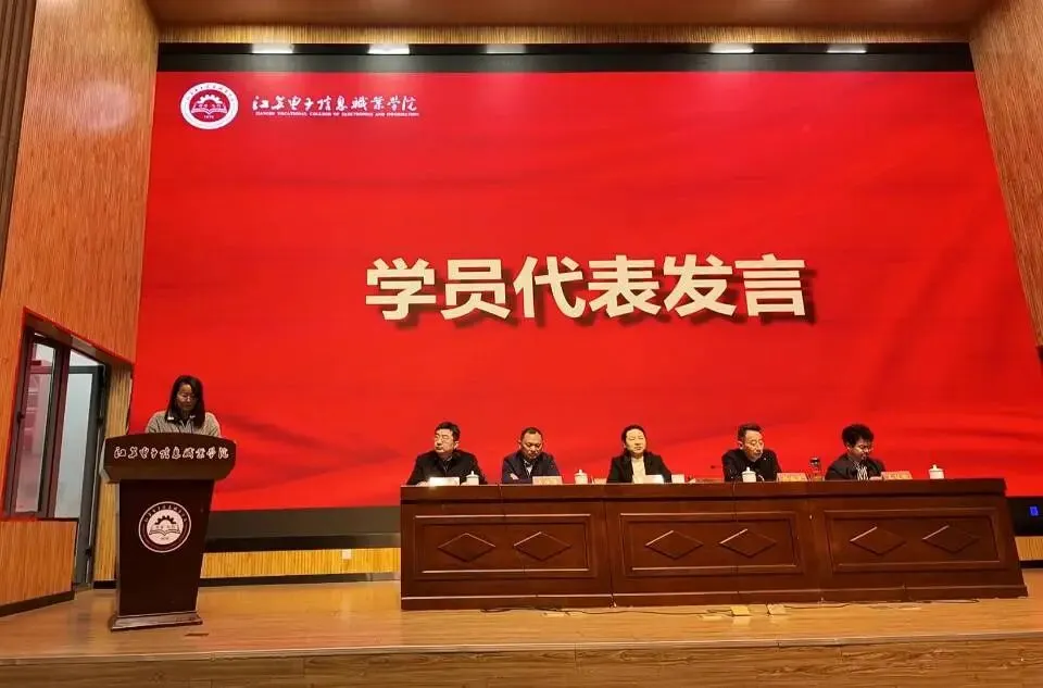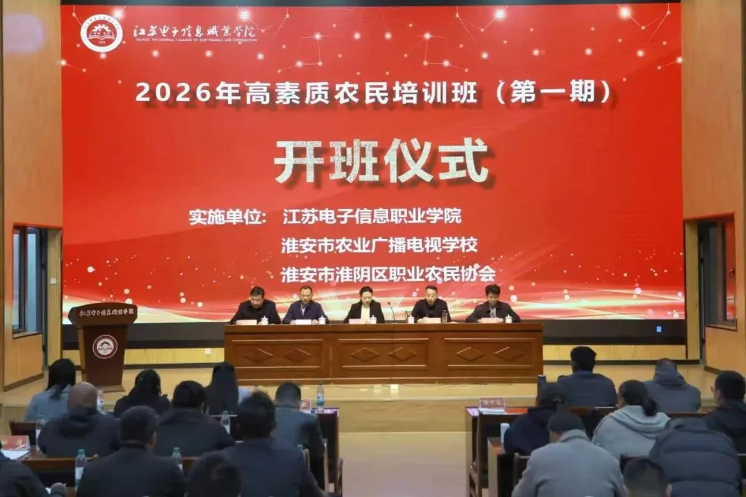 开班仪式由江苏电子信息职业学院电子工程学院副院长方伟骏主持,出席本次培训的领导有淮安市农业广播电视学校校长邢国文,江苏电子信息职业学院副校长朱静,江苏电子信息职业学院继续教育与培训学院院长王佳利,淮阴区新型职业农民协会会长马振勇。