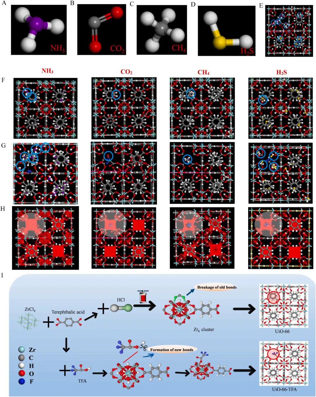 1️⃣ UiO-66-TFA 的缺陷结构成功构建,孔道对挥发性胺高度选择
