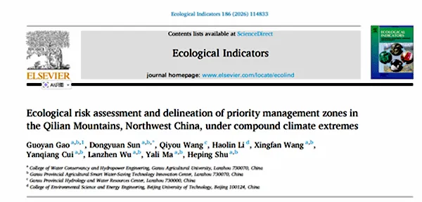 近日,甘肃农业大学孙栋元教授在国际学术期刊Ecological Indicators发表题为“Ecological risk assessment and delineation of priority management zones in the Qilian Mountains, Northwest China, under compound climate extremes”的研究论文。