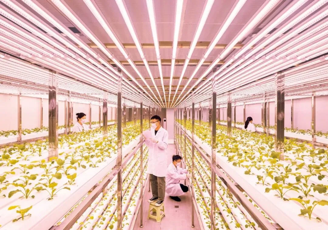 ▲ 中国农科院油料所植物工厂内,科研人员正在维护油菜植株。(图源:湖北日报)