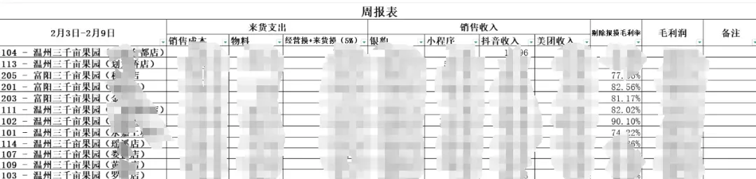 仅仅一个季度时间,三千亩重装开业门店整体营业额同比增长超80%;合作5个月以来,三千亩周报表显示部分门店毛利率已超90%,一般情况下,水果店的毛利率一般在30%到60%之间,少数情况下可能达到60%以上,超90%的毛利率非常罕见。