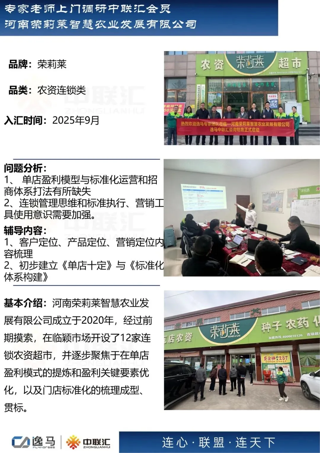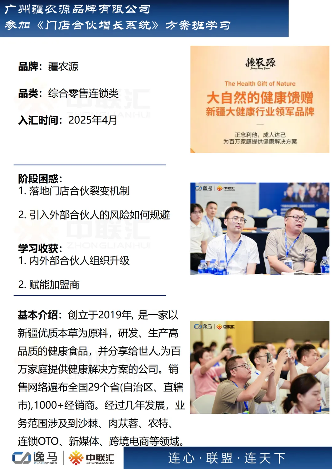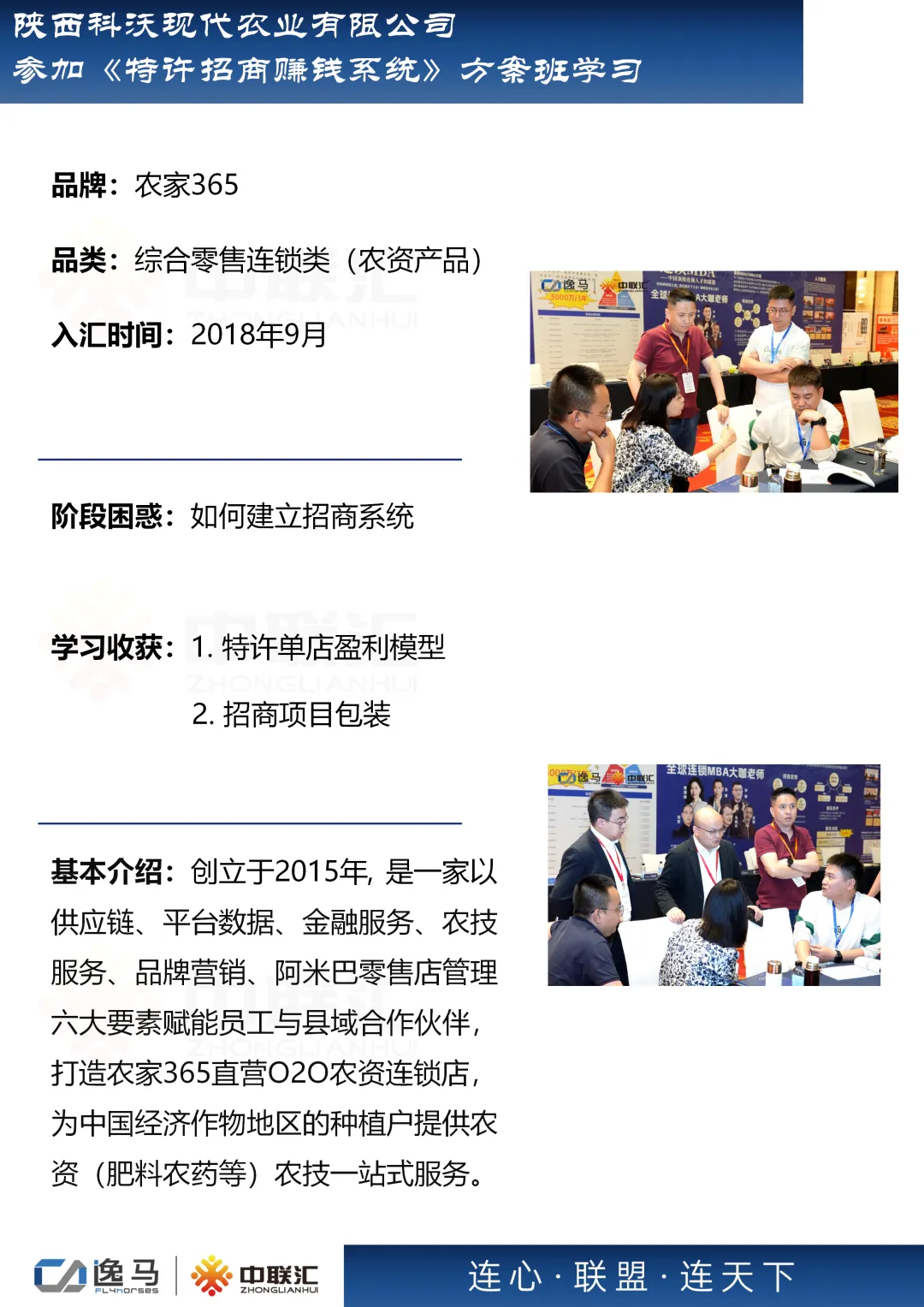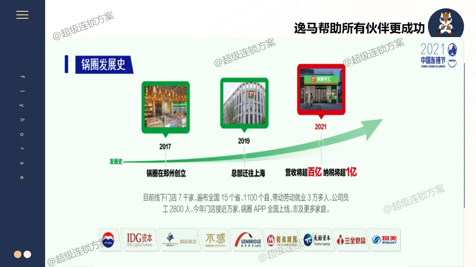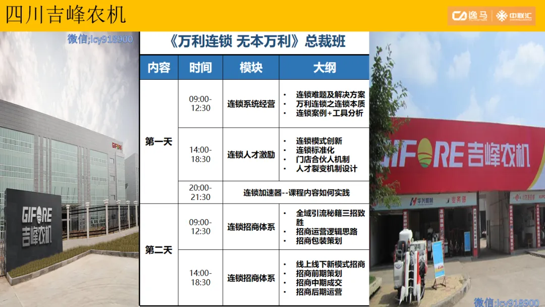逸马连锁产业集团专注连锁产业研究与服务22年,本着“终生伙伴、幸福一生”的经营理念,聚焦战略陪跑服务,十大系统板块业务为其重磅赋能:连锁培训、连锁咨询、品牌授权、连锁+服务、产教融合、数智商业化中心、政企中心、中 联汇海外、投资中心、百亿教练中心等。选择优秀企业,进行战略陪跑,帮助所有伙伴更成功。
