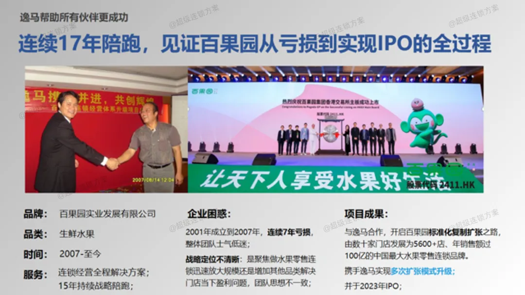 2024年,三千亩果园(以下简称“三千亩”)携手逸马,开启了在水果连锁领域战略陪跑,逸马团队与三千亩团队一起,秉承持续改善门店经营为宗旨,目前合作第一阶段“扭亏为盈”,通过全面赋能手把手带教团队,并全面落地,已取得初步成效。