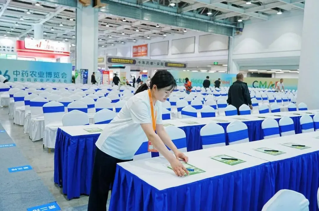 药通网工作人员正在有序布置会场
