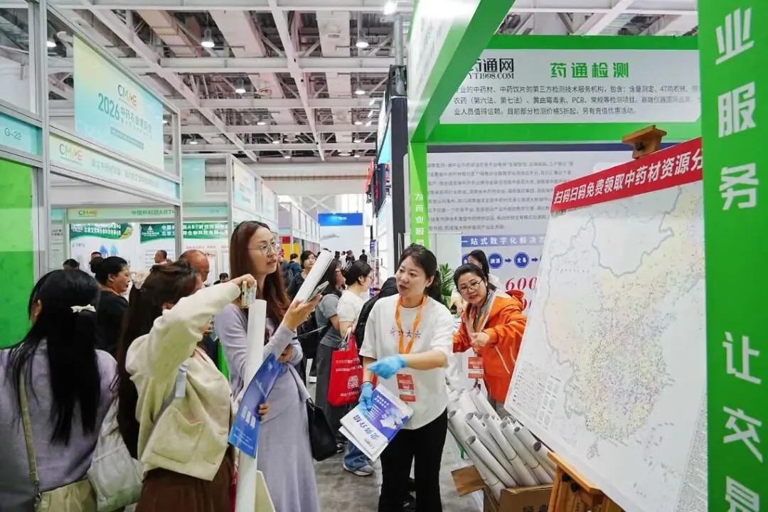 药通网工作人员向前来参观的客商介绍公司业务