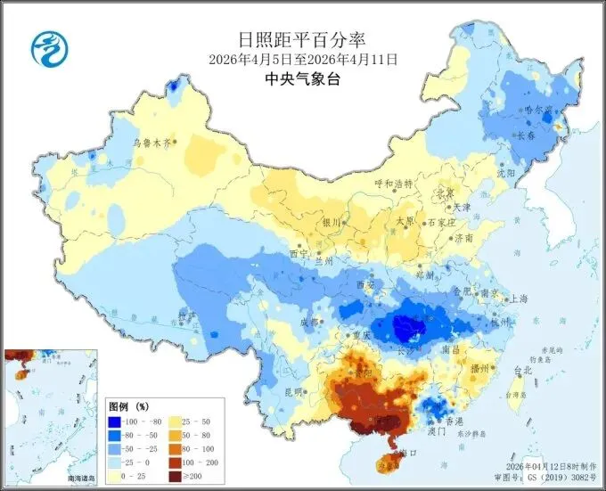 本周(2026年4月5日-2026年4月11日),全国大部农区平均气温接近常年同期或偏高1~4℃,其中西北地区中西部、江淮南部、江南大部、华南大部、西南地区东南偏高4~6℃,新疆北部、湖南南部、广西大部、海南西部和贵州东南部偏高达6~8℃(图1)。东北地区大部、华北南部、黄淮大部、江淮、江汉中部、西南地区北部和东部、青海南部等地降水量有10~50毫米,江汉南部、江南大部、华南东部、重庆东南部和贵州北部降水量有50~200毫米(图2),上述大部地区降水量较常年同期偏多5成至4倍,全国其余农区降水量不足10毫米或无降水。全国大部农区日照时数接近常年同期,其中西北地区北部、华北西部、华南大部、西南地区东南部等地偏多3成至2倍,东北地区中北部、西北地区南部、江淮西南部、江汉、江南北部、广东中南部等地偏少3~9成(图3)。