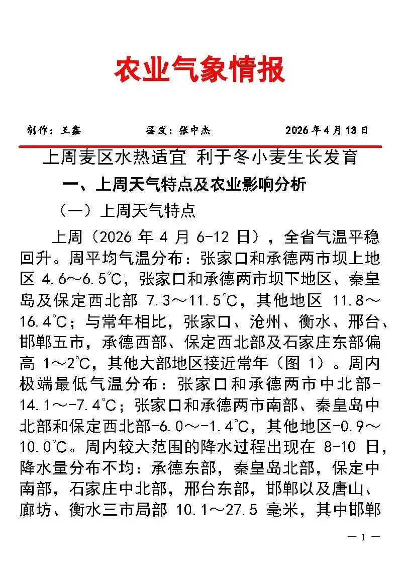 >河北农业气象情报(4-13)