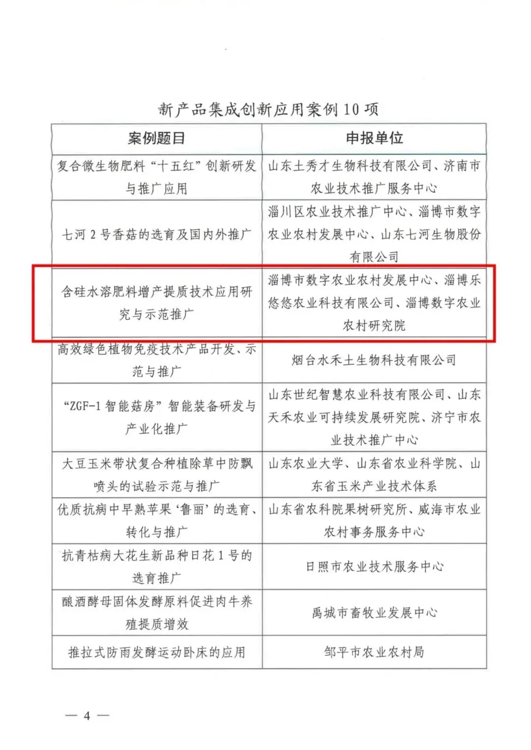 “含硅水溶肥料增产提质技术应用研究与示范推广”入选山东省农业农村厅十项新产品集成创新应用案例并全省推介