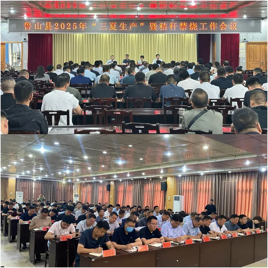 (一)5月20日上午,鲁山县2025年“三夏”生产暨秸秆禁烧工作会议在县宣传文化中心三楼会议室召开。会议传达贯彻省、市相关会议精神,全面部署全县“三夏”生产、秸秆禁烧及综合利用工作。县委副书记王红敏主持会议,县长叶锐出席会议并讲话,副县长殷高洁、于韶伟对具体工作作出安排。会议强调,“三夏”生产和秸秆禁烧是全年农业工作的重中之重,各乡镇、各部门要突出重点、精准施策,抓好重点区域管理,严格落实“一火双责”机制,加大宣传引导力度,强化应急处置,积极推广秸秆综合利用模式。会议要求,各乡级各部门要扛稳政治责任,加强协作配合,同时还要强化指导、联防、执法保障,对责任落实不到位、工作推进不力的严肃问责,以严实作风确保“三夏”生产安全有序、秸秆禁烧工作取得实效。县秸秆禁烧领导小组成员单位负责同志,各乡镇党委、政府主要负责同志和分管负责同志参加会议。