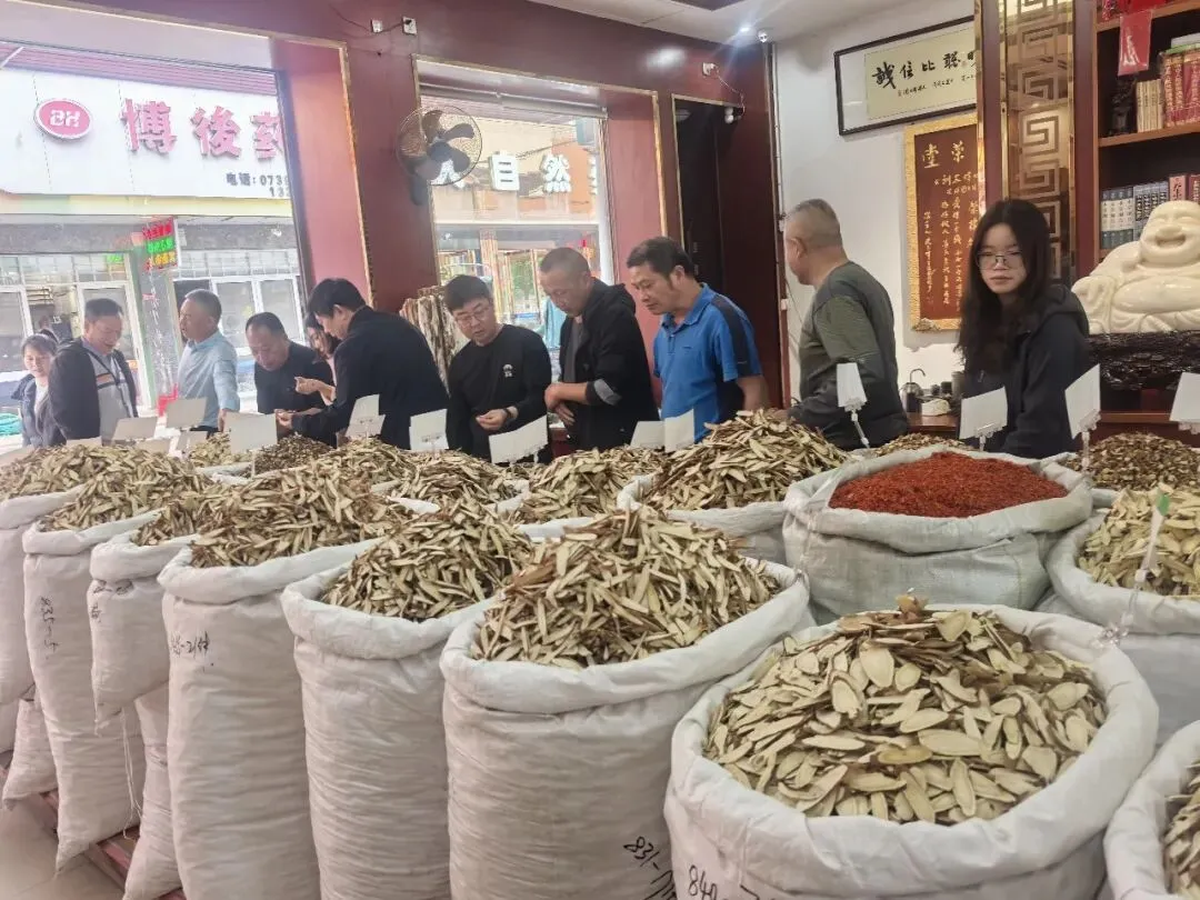 4月11日,培训队伍转战湖南邵东。在松龄堂药业有限公司,学员们走进生产包装车间,近距离观摩标准化生产包装流程。随后,大家来到素有“南国药都”之称的廉桥中药材专业市场,学习中药材真伪鉴别,实地感受仓储、物流、交易等销售环节的运作机制。并与湖南南国药都药业有限公司的技术团队就组培、繁育等话题展开交流。从种苗到种植,从鉴别到生产,从市场到销售,一条完整的产业闭环在现场教学中清晰呈现。