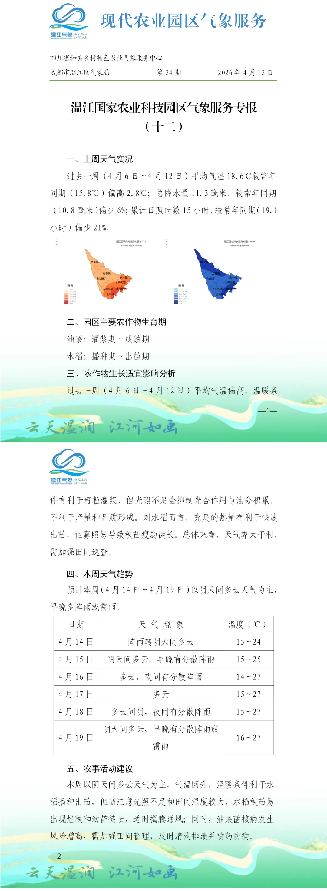 >温江国家农业科技园区气象服务专报(十二)