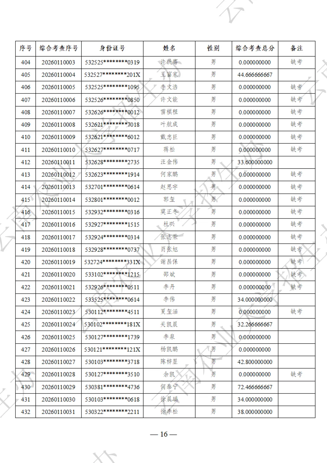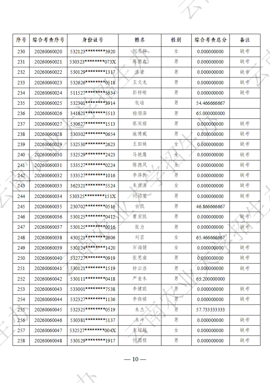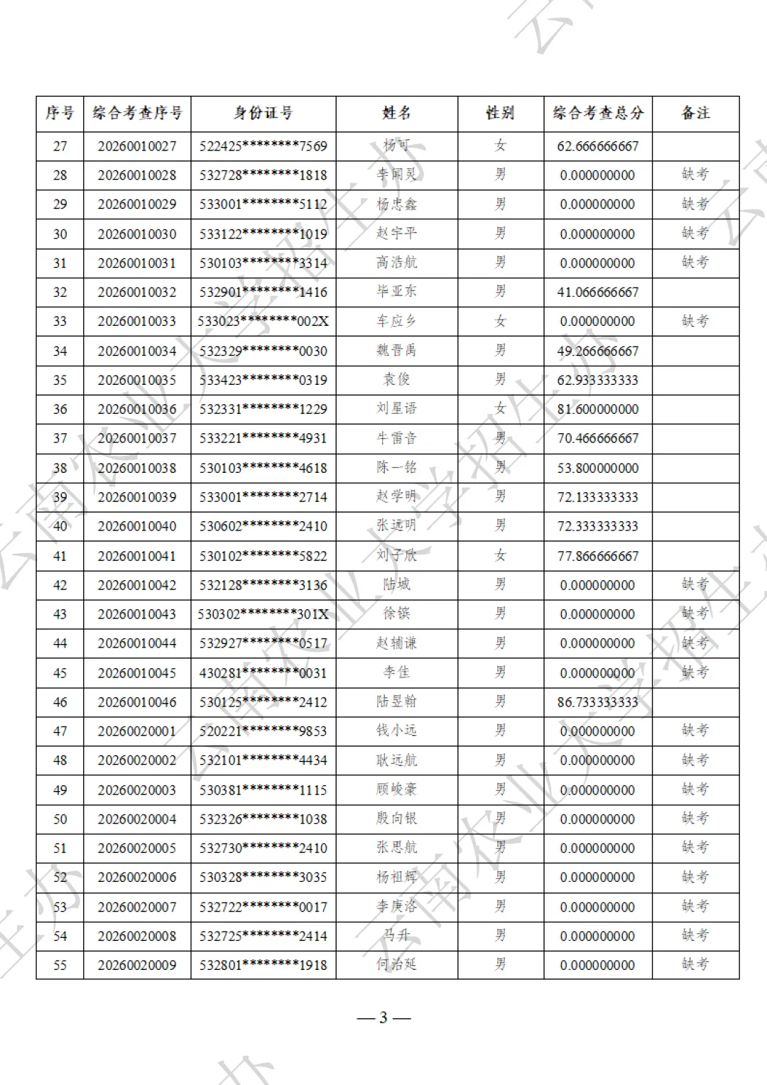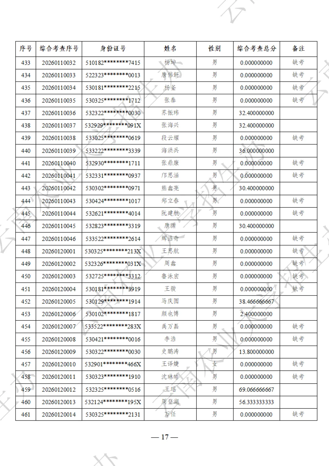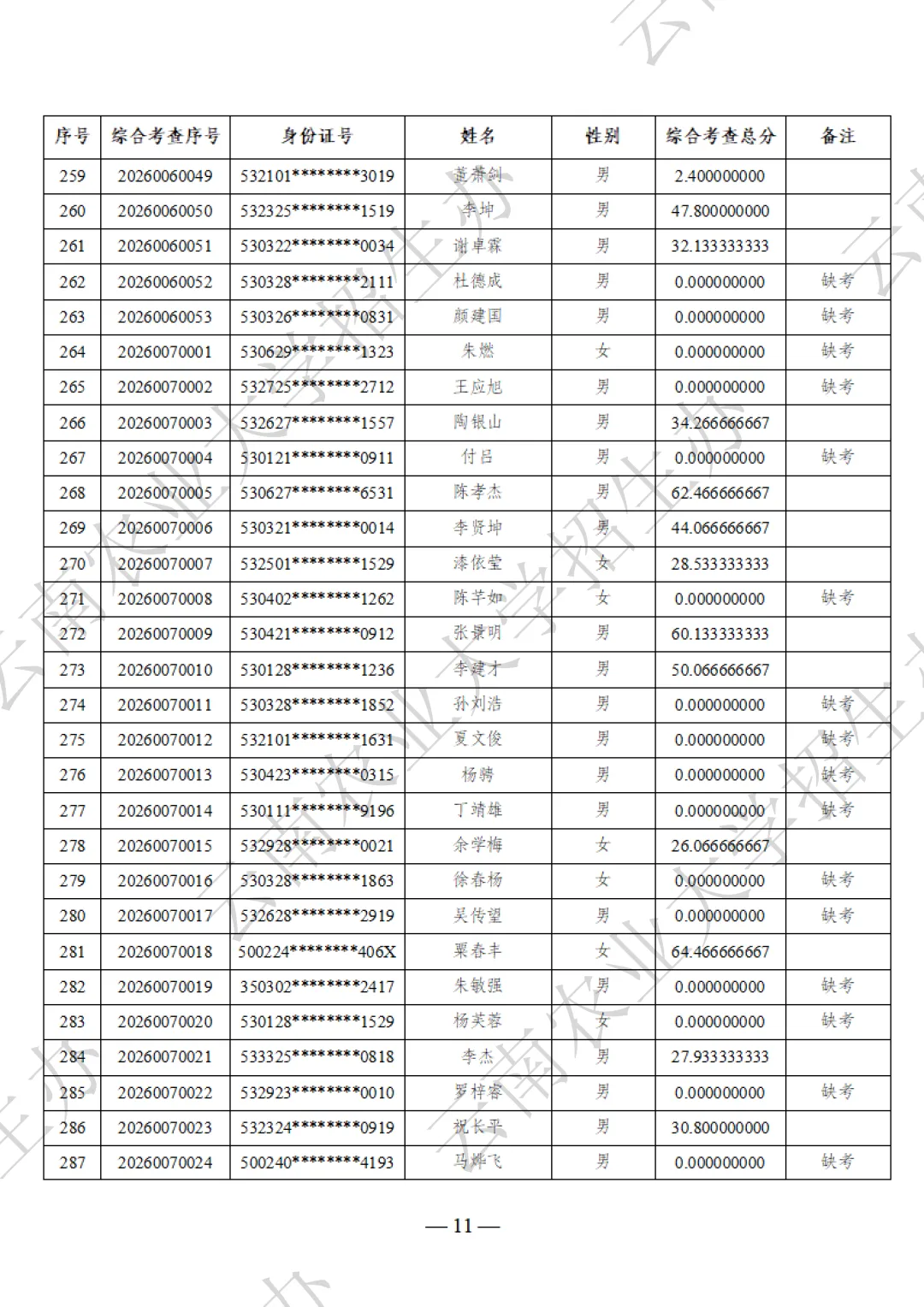 >云南农业大学2026年专升本免试招生综合考查成绩公示