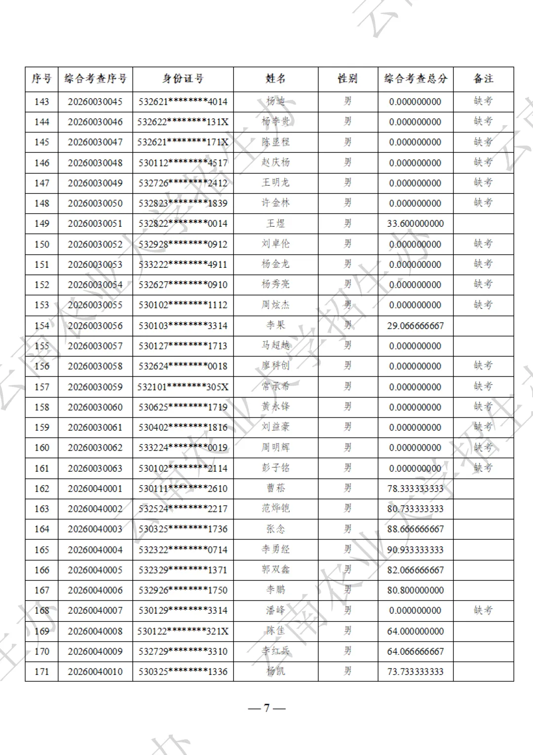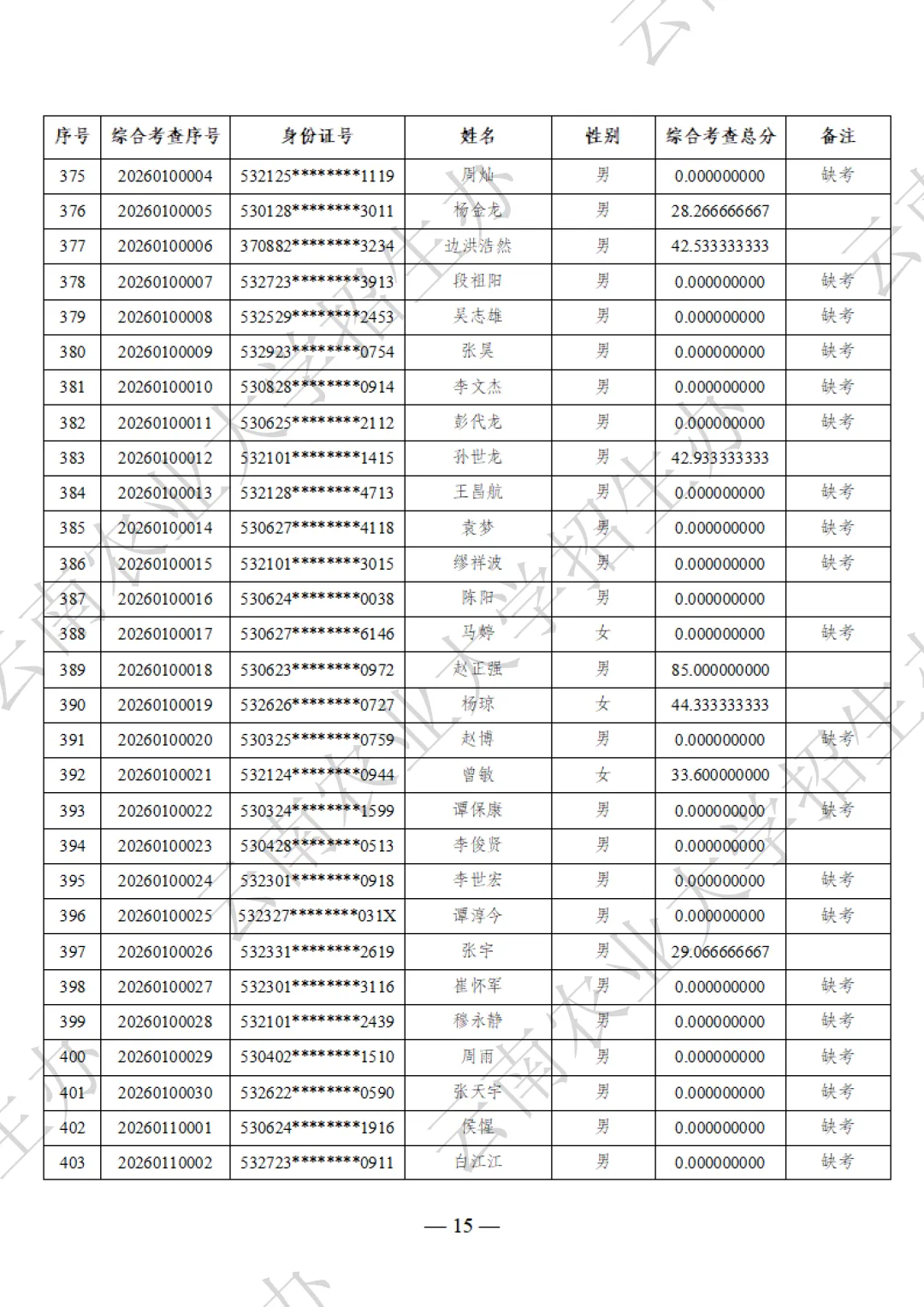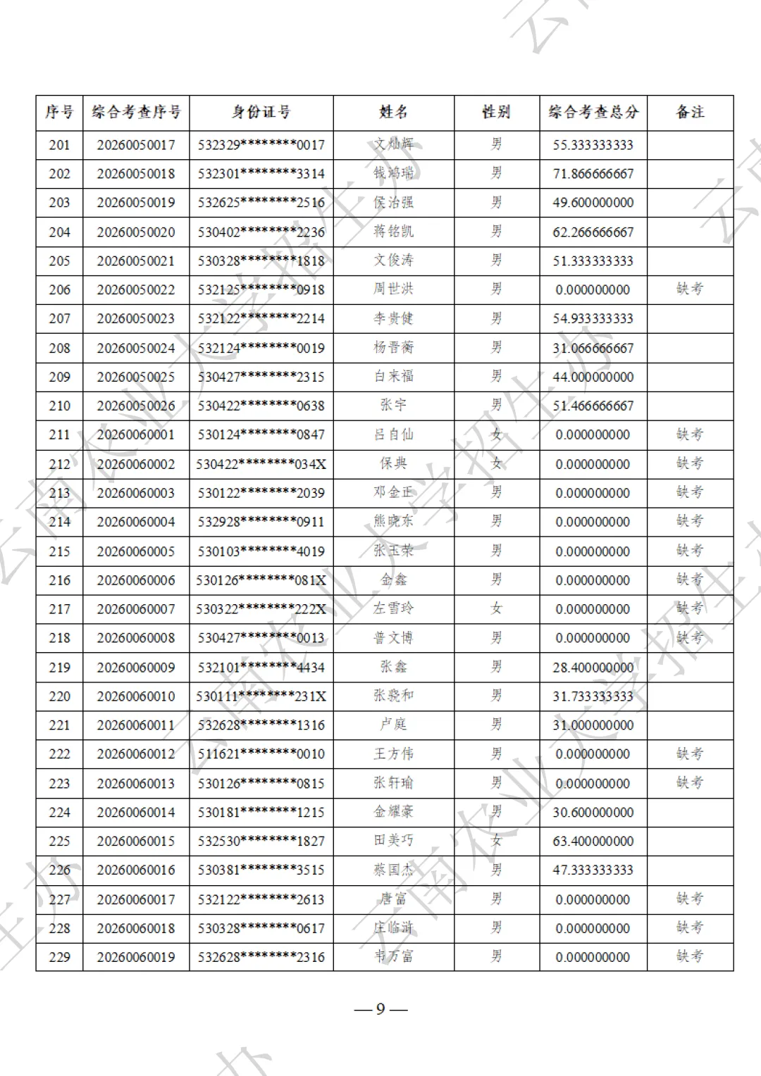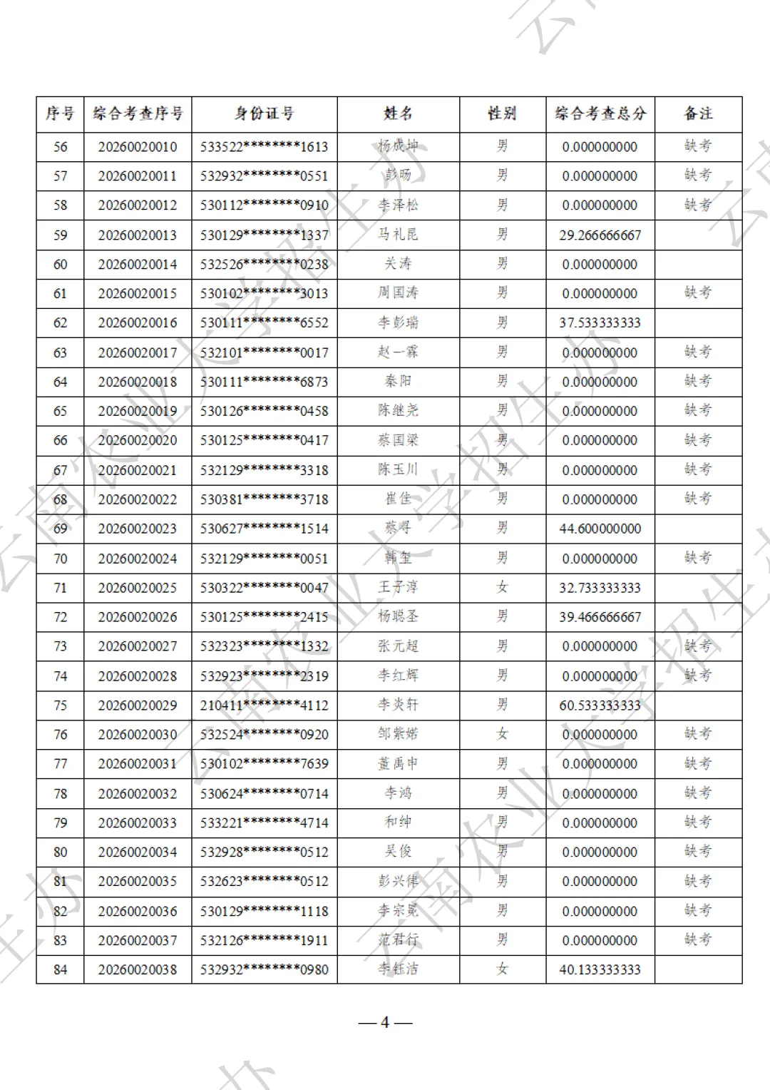>云南农业大学2026年专升本免试招生综合考查成绩公示