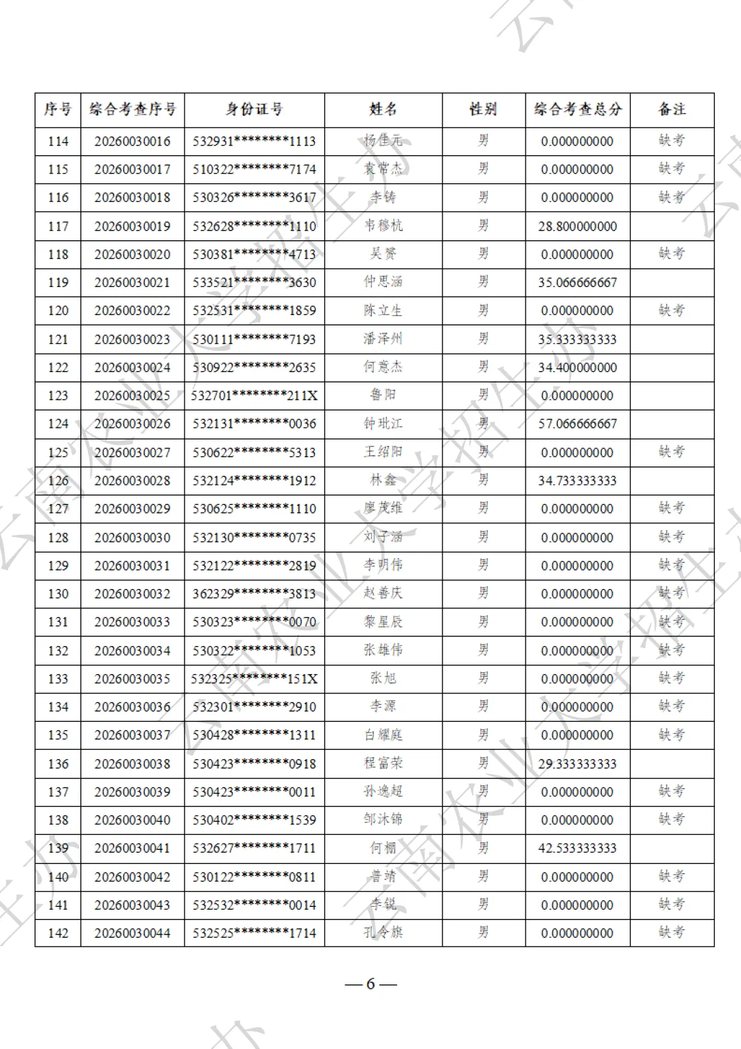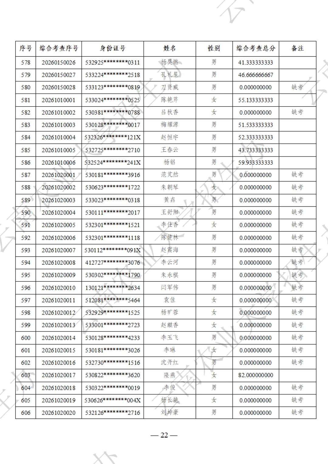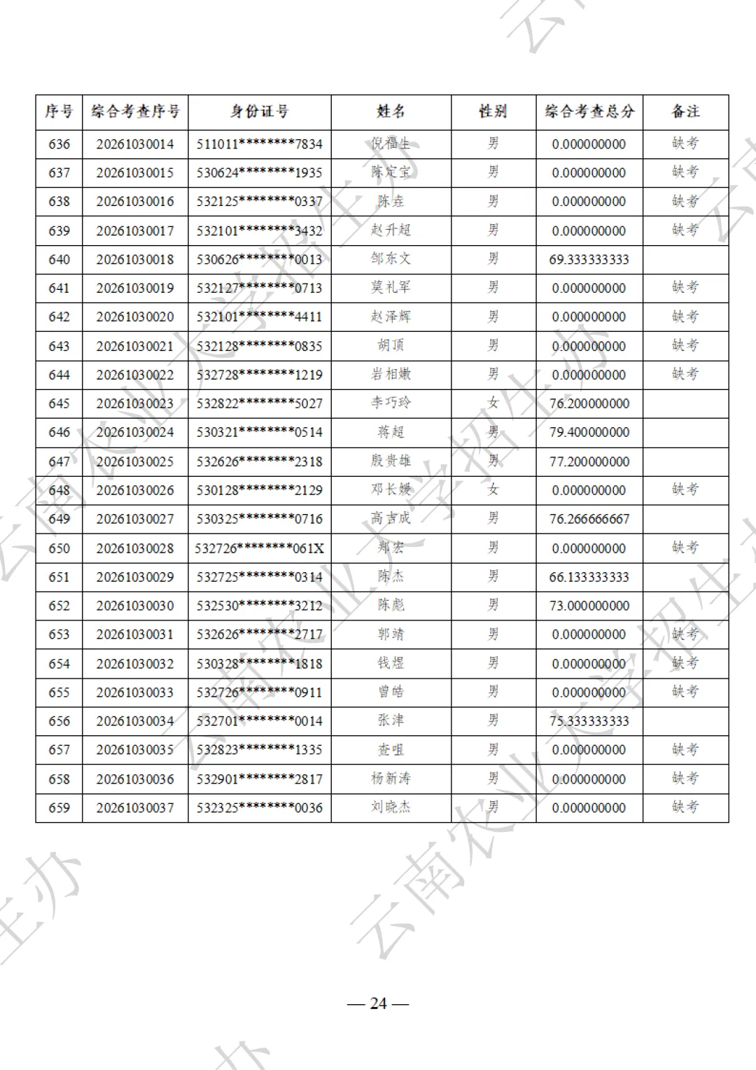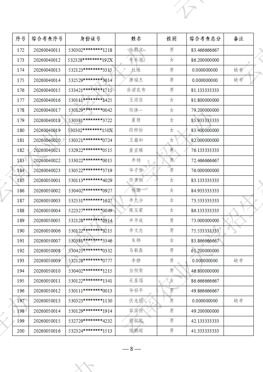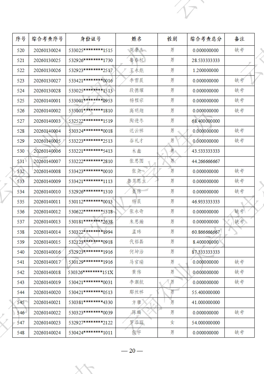 >云南农业大学2026年专升本免试招生综合考查成绩公示