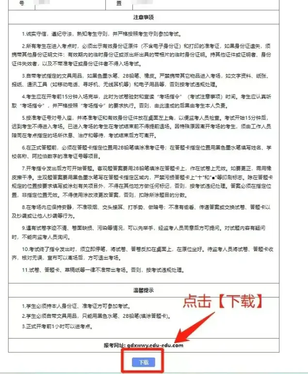第四步:准考证出来后核对个人信息,并点击【下载】身边有打印机的考生可直接打印;