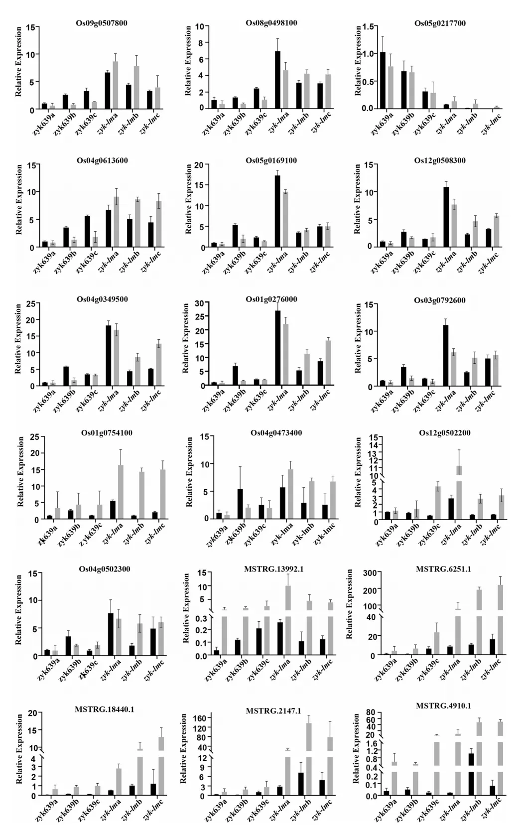 随机选取18个基因进行qRT-PCR验证,结果显示,qRT-PCR检测的基因转录水平与RNA-seq估算的表达丰度高度一致(图11),表明本研究获得的RNA-seq数据可靠,可支持上述转录组分析结果。