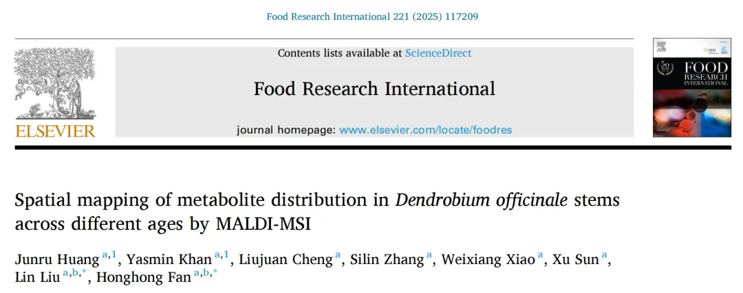 英文题目:Spatial mapping of metabolite distribution in Dendrobium officinale stems across different ages by MALDI-MSI
