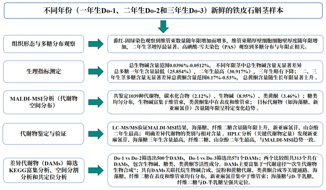 3.应用价值:明确三年生为较优采收期,揭示了活性成分的组织特异性分布,为铁皮石斛的品质优化、资源高效利用及后续代谢合成机制研究提供了理论基础和方法参考。