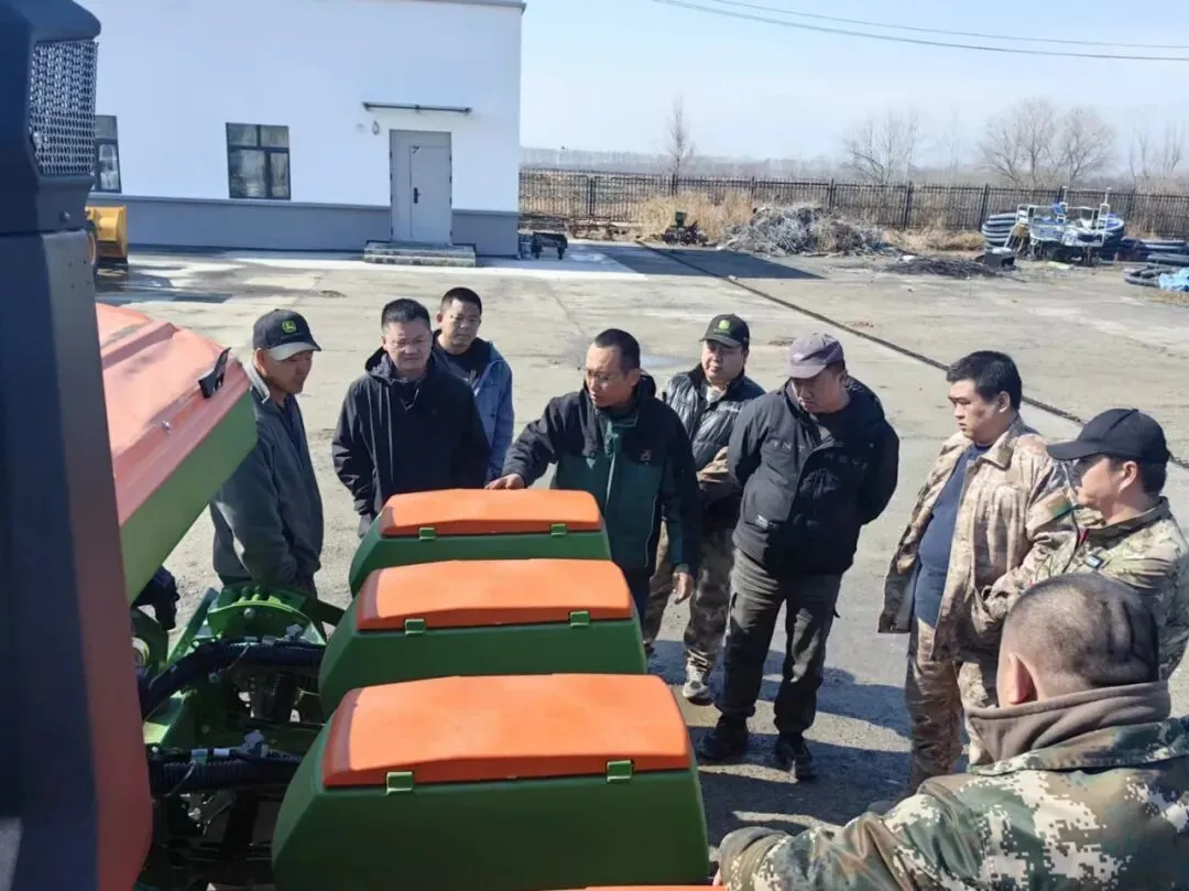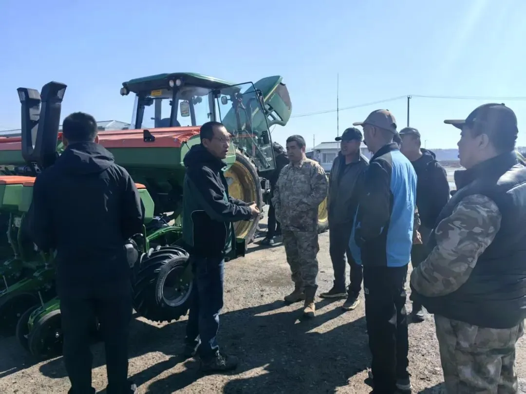 为确保新机具快速投入生产,八五六提前部署,组织技术骨干开展全面检修调试。工作人员逐一紧固螺栓、校准核心部件、调试电控系统,从发动机运转到排种精度,每一个细节都反复打磨,让每一台播种机都以最佳状态“上岗”。此外,八五六还安排专人讲解操作要点、维护技巧及安全注意事项,手把手指导种植户熟悉设备功能,帮助大家快速掌握智能农机操作要领,实现“买得放心、用得省心”。