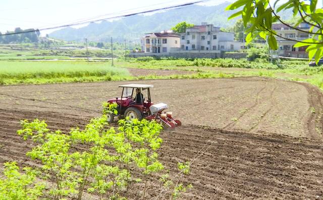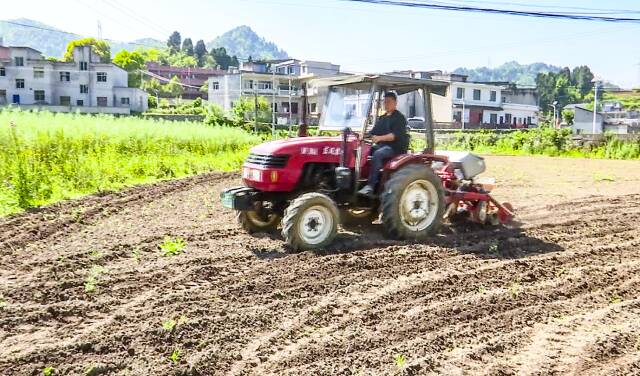 在泮水镇遵金村机播玉米种植现场,播州区润田农机专业合作社的农机操作手谭志勇驾驶多功能一体化播种机在农田里平稳穿梭,播种、施肥等多道工序一次性高效完成。2亩多地的玉米播种,仅用了15分钟就播种完成。
