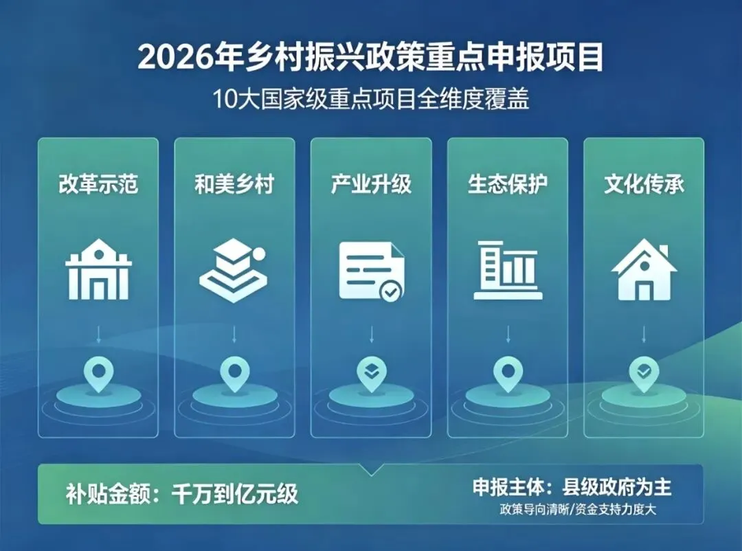 把握2026乡村建设政策风口,以合规申报、精准施策,撬动亿元级资金,助力县域农业农村高质量发展!