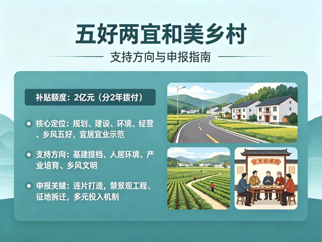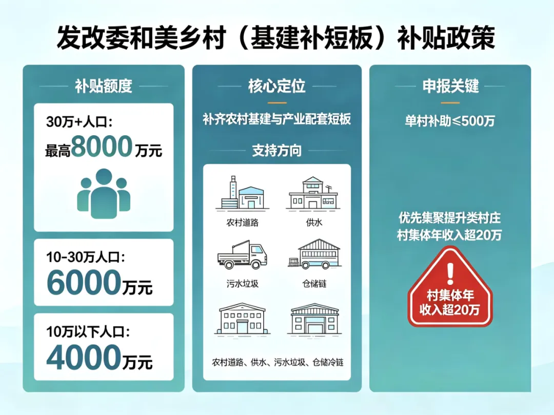 - 申报关键:单村补助≤500万,优先集聚提升类村庄,村集体年收入超20万。