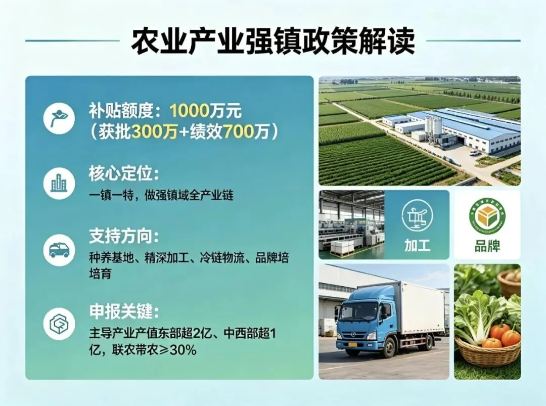 - 申报关键:主导产业产值东部超2亿、中西部超1亿,联农带农≥30%。