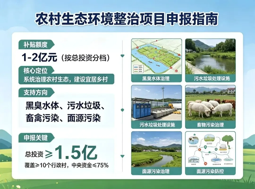 - 支持方向:黑臭水体、污水垃圾、畜禽污染、面源污染