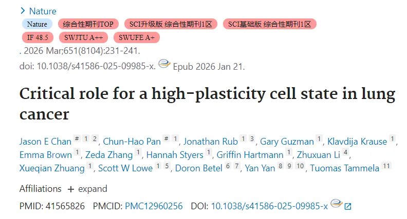 标题:高可塑性细胞状态在肺癌中的关键作用