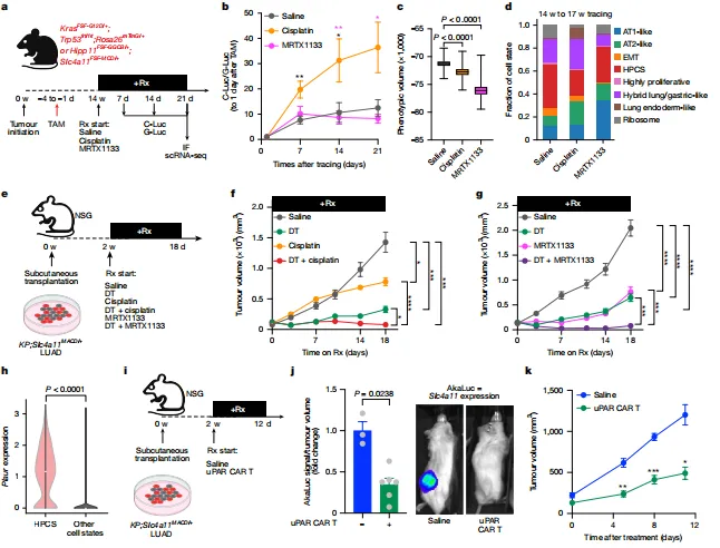 化疗及靶向治疗会使HPCS存活并扩张,还会诱导其向不同耐药状态分化;联合清除HPCS可显著提升肿瘤清除效果,uPAR 靶向CAR-T也能有效清除HPCS并抑制肿瘤生长,表明HPCS是耐药根源,靶向HPCS可根除残留病灶(图4)。