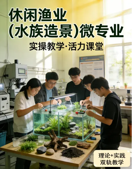 (3)培养模式:微专业基于水族造景产业现状和现代教育教学模式,实行“理论授课+实验室实操+企业实训”三段式培养。微专业课程学习不收取学分研读费,修完全部学分(5门课程共9学分),由学院审核,报学校教务处审定,发放证书。微专业所修学分可以抵消相应通识课程学分2分。