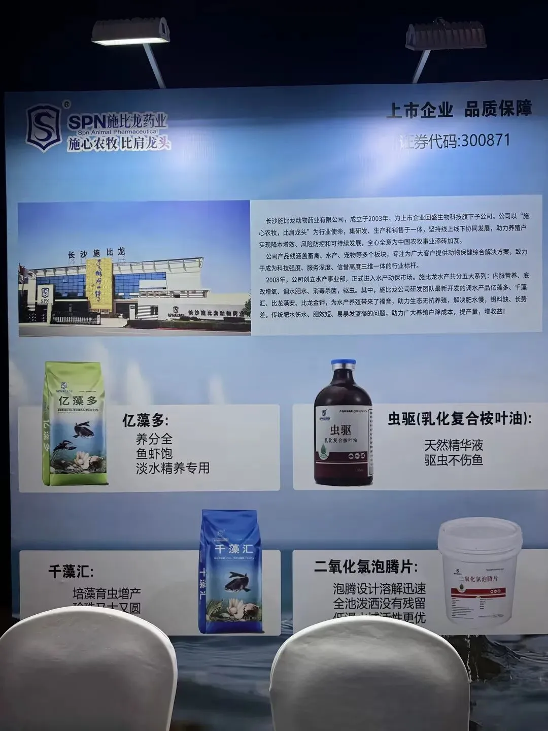 2008年,公司创立水产事业部,正式进入水产动保市场。施比龙水产共分五大系列:内服营养、底改增氧、调水肥水、消毒杀菌,驱虫。其中,施比龙公司研发团队最新开发的调水产品亿藻多、千藻汇、比龙藻安、比龙金钾,为水产养殖带来了福音,助力生态无抗养殖,解决肥水慢,铒料缺、长势差,传统肥水伤水、肥效短、易暴发蓝藻的问题,助力广大养殖户降成本,提产量,增收益!