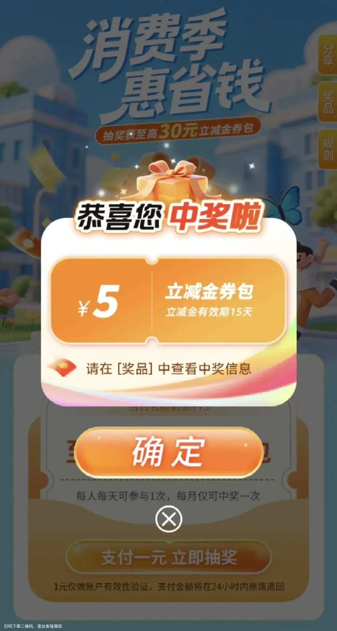 2、每周五到周日,抽:3-15元碰一下支付红包,日限1次(3张周末支付券,没中可换小号再抽)