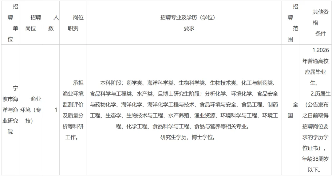 报名地点:中国海洋大学崂山校区体育场(东操场),具体展位为“中国海洋大学2026届毕业生春季大型供需见面会”宁波市海洋与渔业研究院展位。