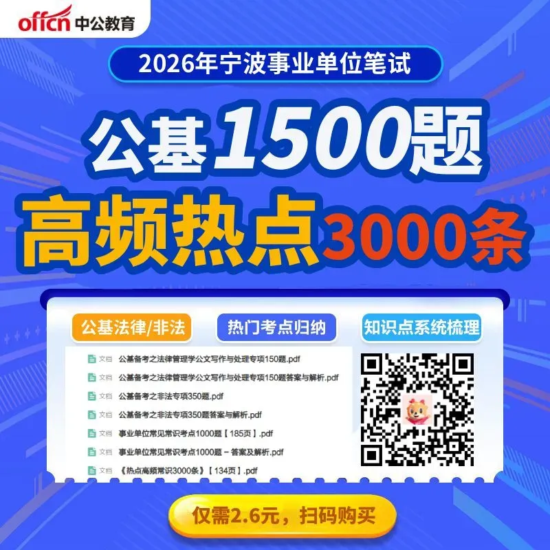 ▼▼▼ 宁波事业单位公基 1500题+高频热点3000条 2.6元点击图片领取: