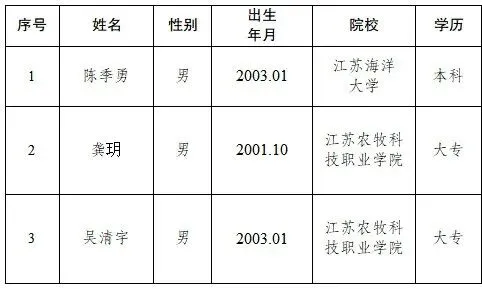 经过笔试、面试、考察等环节,确定陈季勇等为苏垦渔业公司本次招聘拟聘用人员,现进行公示。