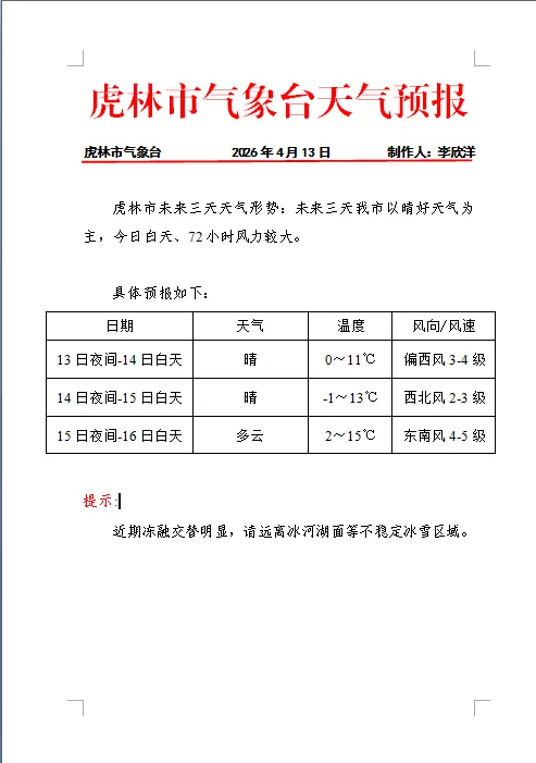 天气变化 请注意预防