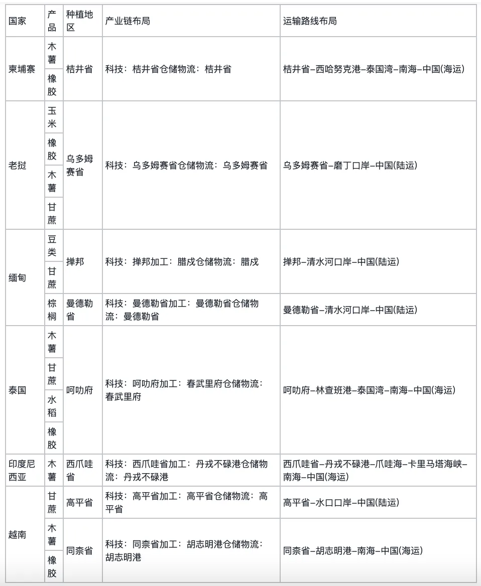 国际农业开发合作作为多因素驱动的系统工程,其可行性受政治经济环境、资源要素禀赋、产业结构特征与贸易物流条件等因素的共同制约。本节基于比较优势理论,对中国-东盟农业合作的潜力与风险进行系统研判。从政治经济与政策环境的视角来看,东道国的制度环境是国际农业合作的基础保障。国际投资通常面临东道国文化、制度与经济环境差异的挑战,企业在进入东道国初期往往因“外来者劣势”而易失利或遭遇困境。与此同时,部分东道国可能会出现政权更迭后的政治反弹,对立党派之间会存在强烈的政见纷争,使得项目实施面临不确定性。从资源要素与生产结构的视角来看,竞争优势的建立离不开比较优势的发挥。传统比较优势理论认为各国应基于自身资源优势,集中生产与出口具有比较优势的产品。由于资源禀赋状况、人口结构状况以及产业结构状况等差异,不同国家有着不同的贸易模式和比较优势产业。与东盟国家相比,中国在农产品出口中处于比较劣势地位,而东盟各国通过强化比较优势和贸易联系,能显著提升其各自在价值链中的分工地位。从贸易物流的视角来看,贸易物流通畅性是实现比较优势的重要保障。经济发展高度依赖交通与物流体系的完善程度,尤其是跨国经济的发展。研究表明,交通基础设施的改善对东盟各国的贸易效率具有积极影响。中国与东盟以湄公河流域接壤,交通物流是双方互联互通的重要支柱之一。双边贸易物流的通畅性,将极大地影响运输成本与合作效益。