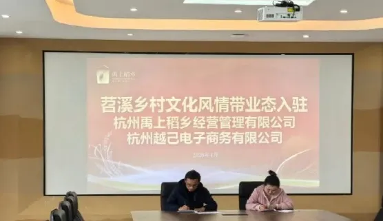 4月8日讯,杭州禹上稻乡经营管理有限公司与杭州越己电子商务有限公司进行了苕溪乡村文化风情带业态入驻签约仪式。苕溪乡村文化风情带,是余杭街道重点打造的农文旅融合发展示范项目,以自然生态、历史遗存与现代活力为核心,致力于打造一条“看得见山水、留得住乡愁”的共富风情带。截至目前,苕溪风情带已成功招引野餐盒子、刺本唱片、小派科技、猎应体育、越己电子商务及禹上品牌馆等多元项目入驻,入驻率达75%。(禹上稻乡YushangLandofRice)