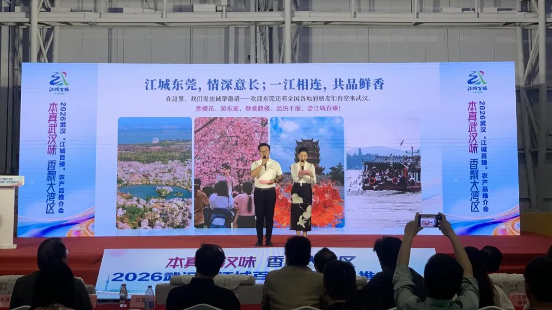 4月11日讯,本真武汉味 香飘大湾区——江城百臻东莞专场推介会在第十届中国国际食品及配料博览会、第四届中国国际预制菜产业博览会、第十五届广东现代农业博览会现场成功举办。江城百臻品牌推介官王德鑫、张琬梓对武汉特色农产品进行集中推介,现场穿插互动抽奖环节,氛围热烈、人气高涨,现场还进行了集中签约仪式。此外,在展览区内,武汉市携19家江城百臻目录企业组团精彩亮相,以120平方米主题展区全方位展现武汉“鱼米之乡”的深厚农业底蕴、强劲产业活力与卓越品牌实力。(江城百臻)