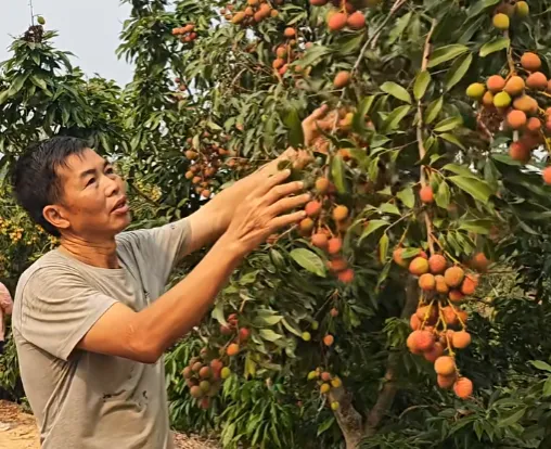 4月12日讯,高州市平山镇玉坑塘禾利埇村的果农开始采摘早熟荔枝“三月红”交付给采购商,当地水库周边区域的早熟品种将陆续上市。走进禾利埇村荔枝种植大户石宗胜位于水库边的果园,只见园内多种荔枝品种中,“科技一号”已红彤彤挂满枝头,触手可及。据介绍,该果园的“科技一号”已被客商预订,将于4月14日采摘,收购价为每斤12元。记者了解到,当天率先上市的荔枝主要来自平山镇仁耀垌、禾利埇以及长坡镇大拜等临水库的村庄。再过两天,该片区的早熟荔枝将迎来大量上市。(茂名晚报)
