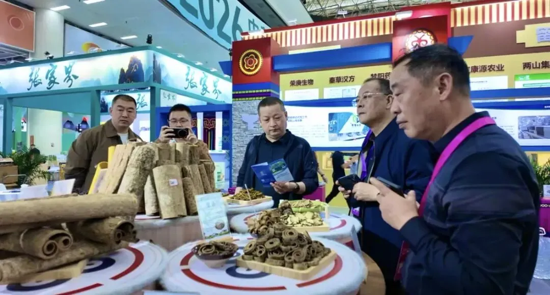 在北川展区,天麻、黄连、大黄、厚朴、黄柏、杜仲等药材整齐陈列,吸引众多采购商驻足咨询。截至目前,已达成战略合作协议超60家,药材销售量达800余吨,涵盖原料采购、GAP基地共建、代工生产等多个领域。(注:GAP即《中药材生产质量管理规范》,是国家推行的中药材种植及采收全过程的质量管理标准。GAP基地共建意味着北川将与药企按照该标准共同建设规范化种植基地,实现从源头保障药材品质。)