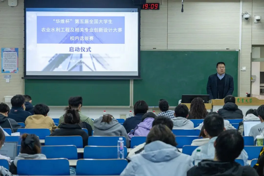 4月9日,第五届“华维杯”全国大学生农业水利工程及相关专业创新设计大赛校内选拔赛启动仪式顺利举行。水利与土木工程学院副院长肖若富、党委副书记张立伟,学校教师教学发展中心主任韩宇、就业创业办公室副主任张文武出席仪式。水院实验中心主任丁涛,水利工程系副主任谢恩、任东阳,实验教学中心教师贺新、李小娟及50余名学生共同参加启动仪式。