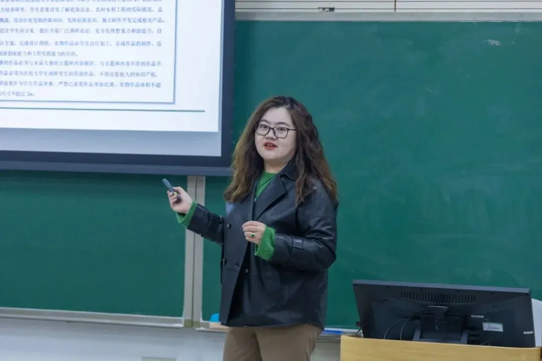 学校教师教学发展中心主任韩宇教授应邀为大赛进行命题讲解。她指出,比赛答辩筛选激烈,同学们应脚踏实地,注重技术实现的可行性、方案的实用性以及展示的完整性,尤其要重视视频质量与文档规范。她结合往届案例,提醒大家注意突发情况的处置。韩宇表示,农水大赛是提升自我的重要平台,师生应充分准备,争取优异成绩.