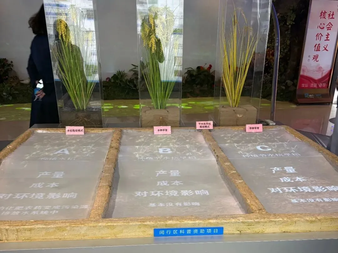 当天下午,与会人员还参观了中心的科普园地和中心重要成果“节水抗旱稻”获奖情况与相关介绍等展区。在基因中心专家团队的讲解下,深入了解节水抗旱稻的品种特性、技术研发历程及在边际土地复耕、低碳种植等领域的突破性成果。展区中,兼具水稻高产优质与旱稻节水抗旱特性品种模型,引发了参会人员的浓厚兴趣。通过直观的展示与数据对比,节水抗旱稻“让贫瘠土壤变丰收田”的科技力量得到生动呈现。