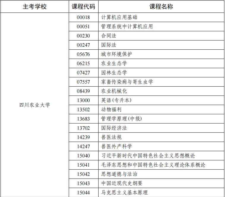2026年春季四川农业大学小自考过程性考核加分科目名单,